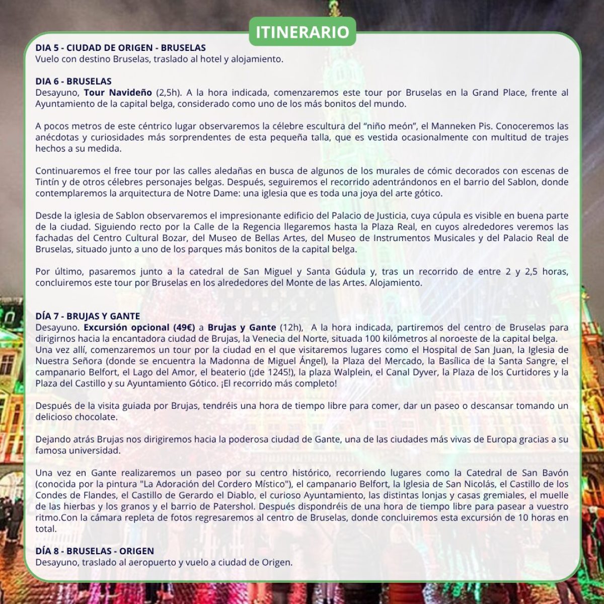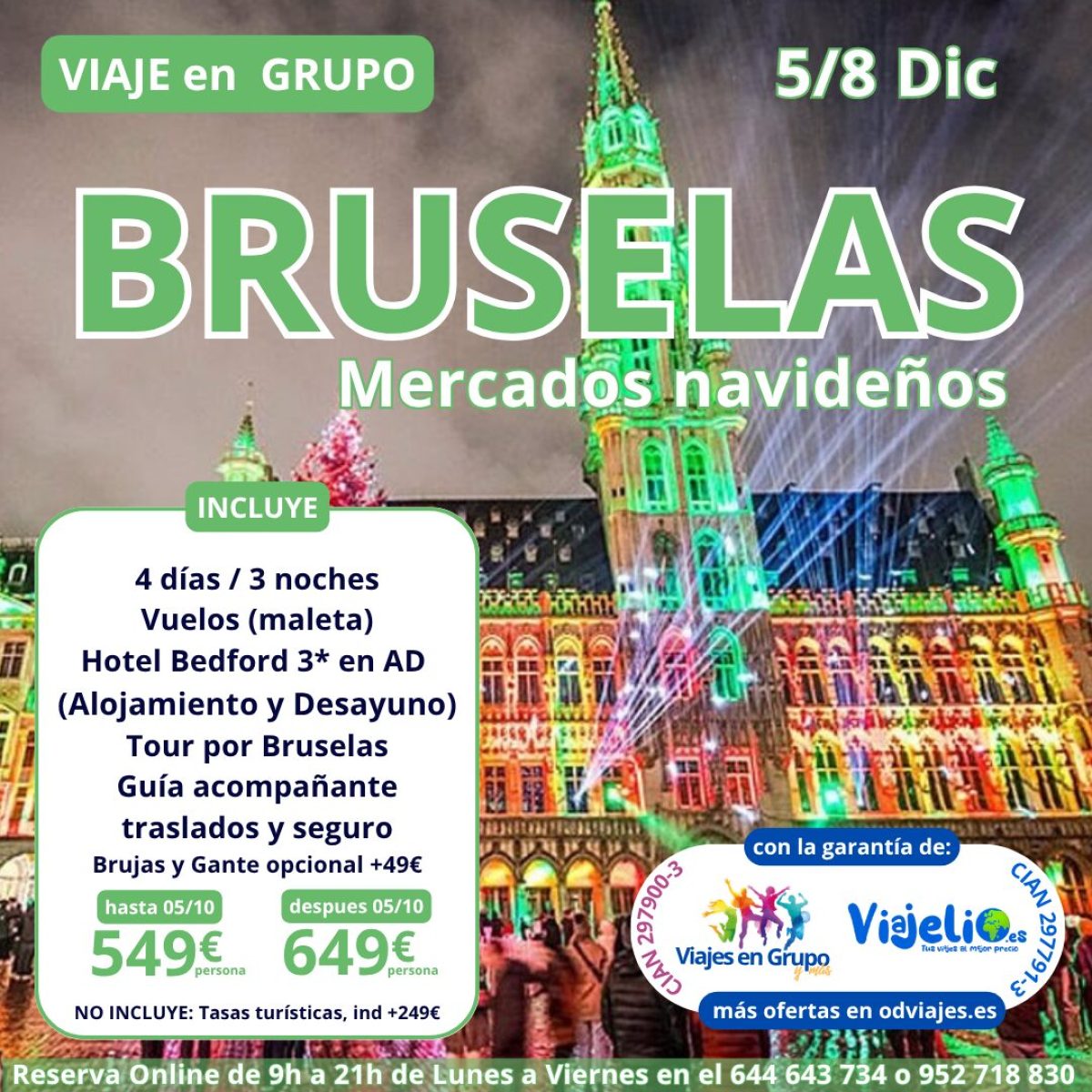 BRUSELAS 🇧🇪 en grupo (Mercados Navideños) desde Málaga del 5/8 de Diciembre. Incluye: Vuelo 🛩️ (mochila 🎒), 🏨 Hotel Bedford 3* en AD (Alojamiento y Desayuno ☕), Tour por Bruselas, Traslados 🚌 y Seguro.. Precio 💶 549€ (hasta 05/10). Excursión a Brujas y Gante +49€ #Bruselas #belgica #viajesengrupo #malaga #viajes #ofertas