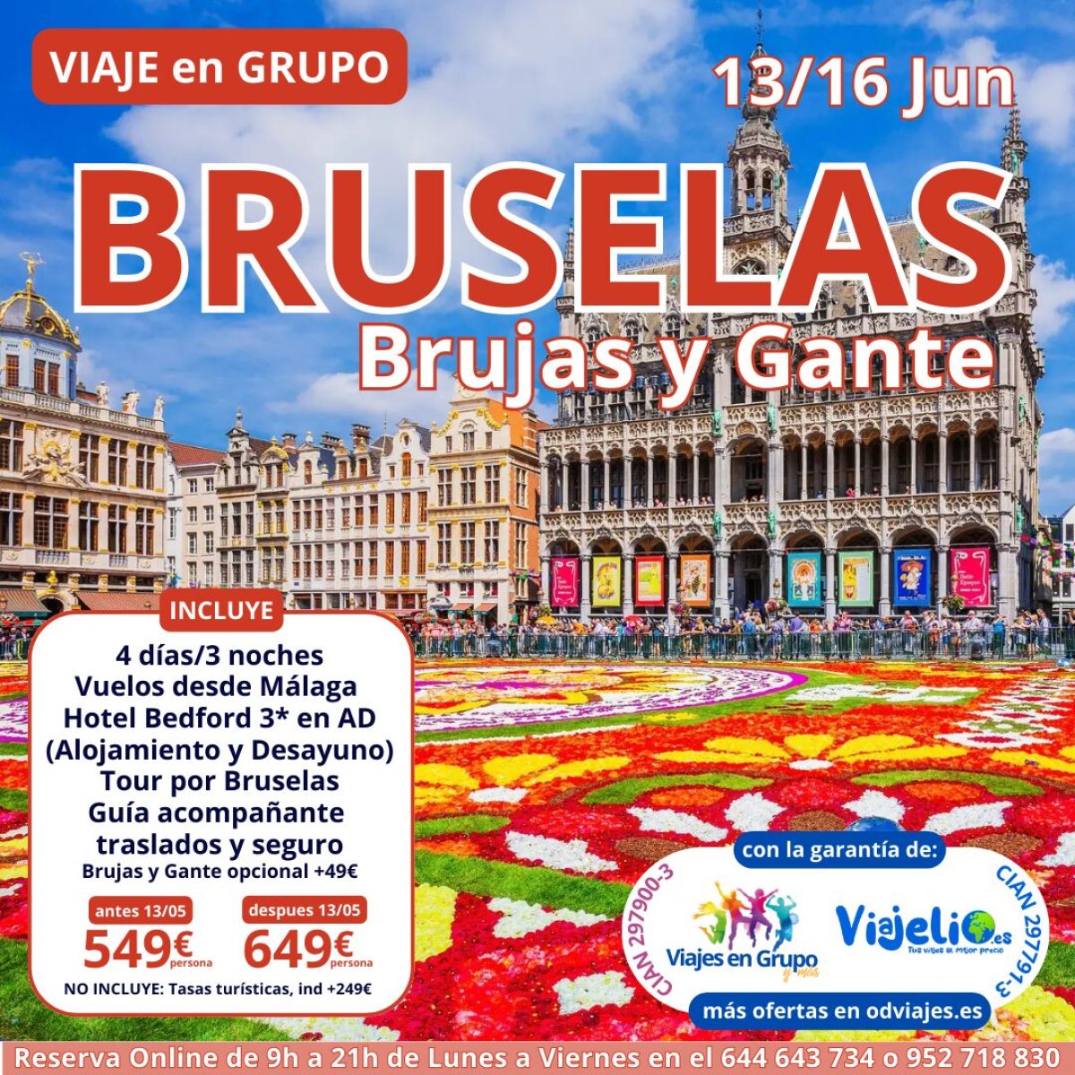 BRUSELAS 🇧🇪 en Grupo desde Málaga del 13/16 de Junio. Incluye: Vuelo 🛩️ (mochila 🎒), 🏨 Hotel Bedford 3* en AD (Alojamiento y Desayuno ☕), Tour por Bruselas, Traslados 🚌 y Seguro.. Precio 💶 549€ (hasta 13/05). Excursión a Brujas y Gante +49€ #Bruselas #belgica #viajesengrupo #malaga #viajes #ofertas