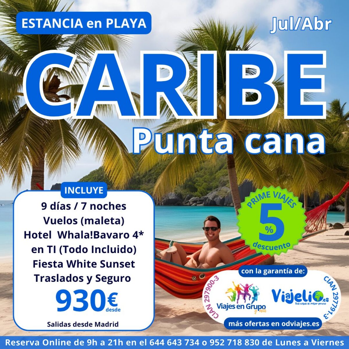 CARIBE 🏝️ de Julio a Abril, (9 días/7 noches) desde Madrid. Incluye: Vuelos 🛩 (maleta), Hotel 🏨 Whala!Bavaro 4* en TI (Todo Incluido🍝), Fiesta White Sunset, traslados 🚌 y seguro. Precio desde 💶 930€. #caribe #puntacana #todoincluido #viajelio #viajesengrupo #travel