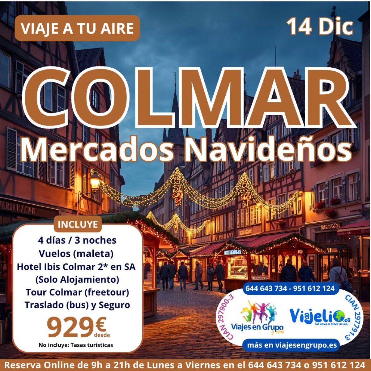 🌍 COLMAR 🎄 Mercados Navideños ✨ 14 Dic (4d/3n) ✈️ Vuelos+maleta | Hotel Ibis 2* SA | Tour freetour | Traslados+Seguro | desde 929€ 💰 Reserva 9-21h L-V ☎️ 644 643 734 / 951 612 124 🌐 viajesengrupo.es #Colmar #NavidadAlsacia #viajesengrupo