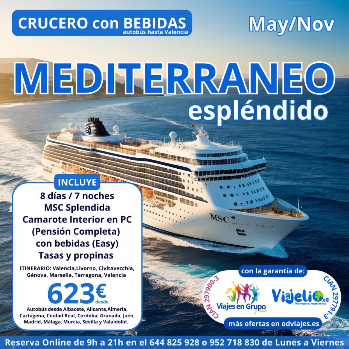 Crucero 🛳️ por el Mediterráneo de Mayo a Noviembre con autobús hasta Valencia (8 días/ 7 noches) en MSC Splendida. Incluye: Camarote Interior 🍜 PC (Pensión Completa), con bebidas 🍹(Easy), tasas 🎟 y propinas. Precio desde 💶 623€. Mas info y reservas aquí 👉 https://viajelio.es/splendida #crucero #msc #mediterraneo #valencia #viajesengrupo #viajelio #travel