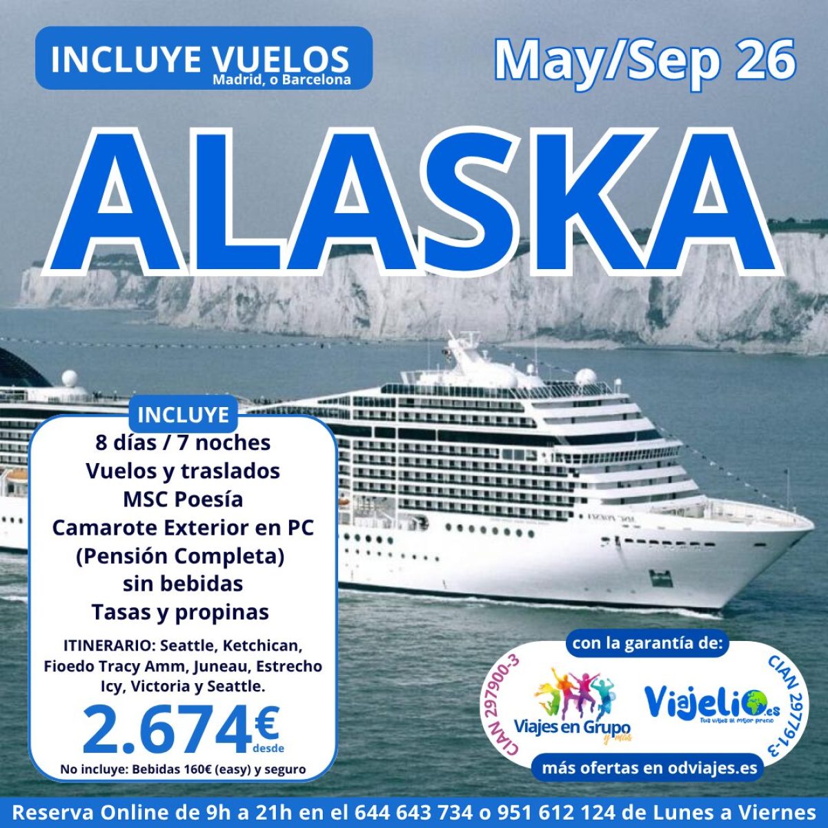 - Reserva web: http://viajelio.es/crucero-alaska