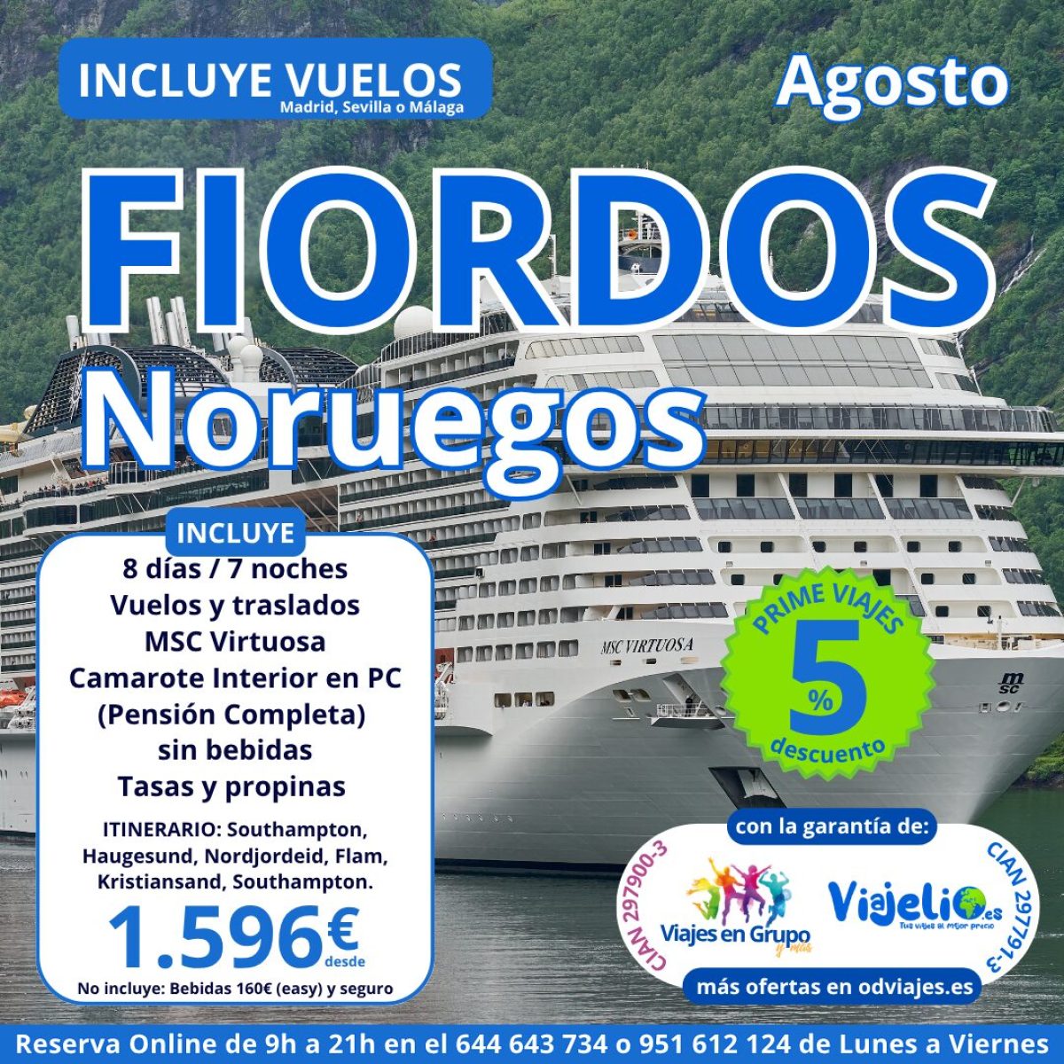 FIORDOS NORUEGOS 🛳️ desde Southampton con vuelos desde Madrid, Sevilla o Málaga en Agosto (8 días/ 7 noches) en MSC Virtuosa. Incluye: Camarote Interior 🍜 PC (Pensión Completa), sin bebidas 🍹, tasas 🎟, vuelos 🛩️, traslados 🚌 y propinas. Precio desde 💶 1.596€. Bebidas +160€ (Easy). Mas info y reservas aquí 👉 https://viajelio.es/msc-virtuosa #fiordos #noruega #msc #cruceros #malaga #madrid #sevilla #viajelio #viajesengrupo #travel