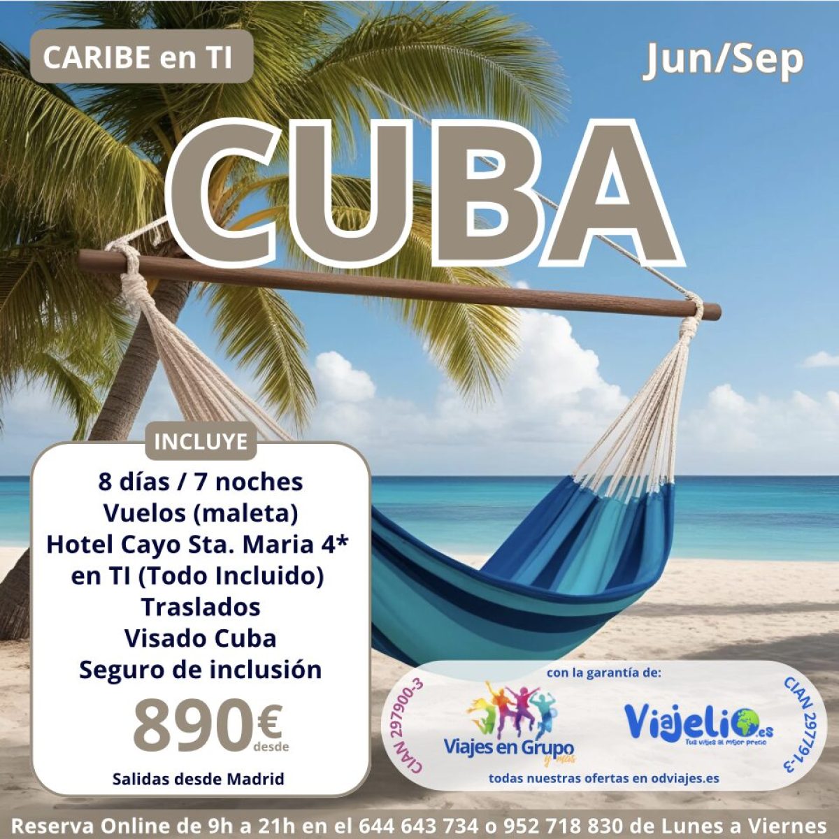 CUBA 🌴 de Junio a Septiembre desde Madrid. Incluye: Vuelos 🛩 (maleta), Hotel 🏨 Cayo Sta. María 4* en TI (Todo Incluido), traslados 🚌, visado Cuba y seguro 🎫. Precio 💶 desde 890€. #caribe #cuba #madrid #viajesengrupo #viajelio #viajes #ofertas