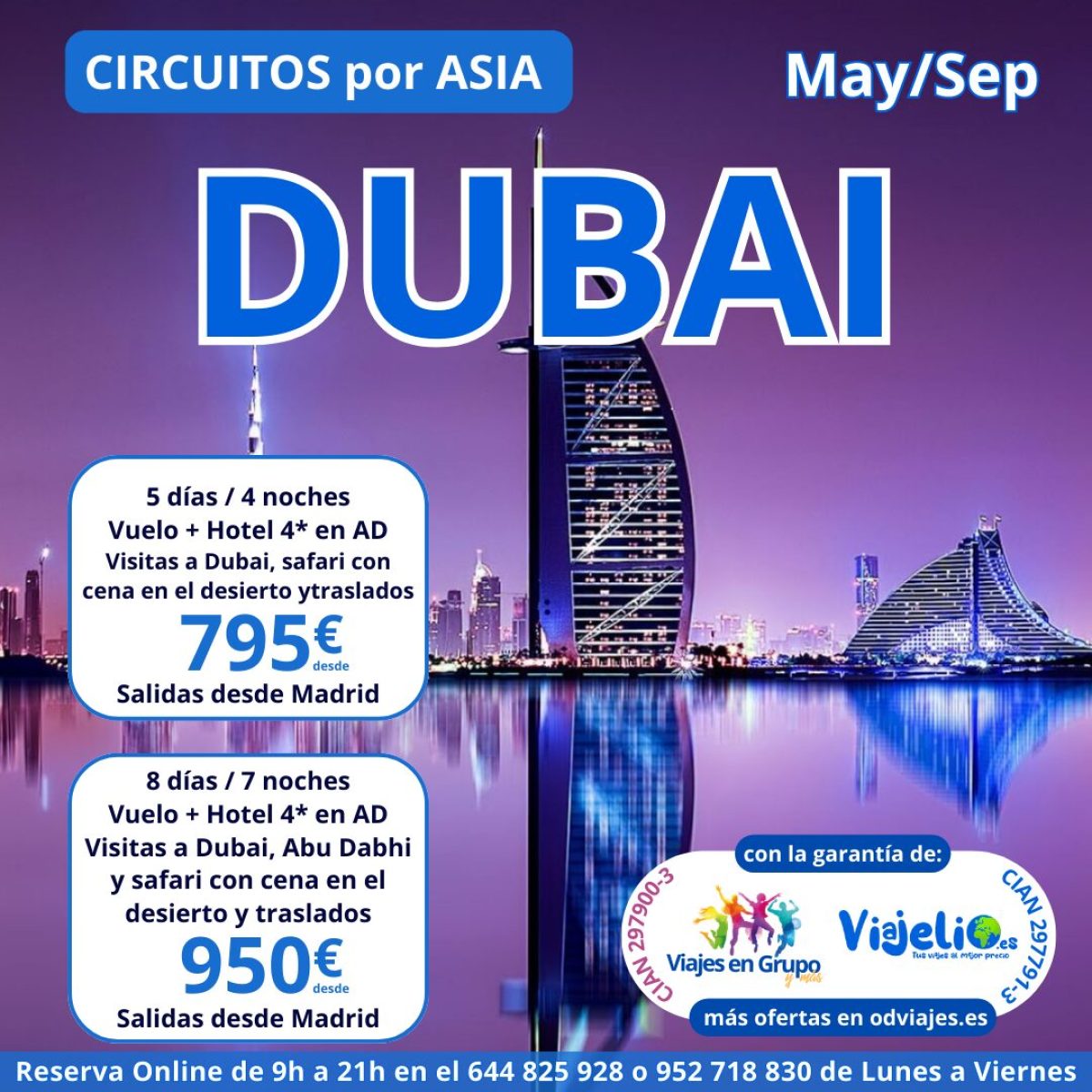 DUBAI 🇦🇪 5 días o 8 días de Mayo a Septiembre. Incluye: Vuelos 🛩 (maleta) Hotel 🏨 4* en AD (Alojamiento y Desayuno), Visitas a Dubai, Abu Dabhi (8 días), safari, cena en el desierto 📷 y traslados 🚌 . Precio desde 💶 795€. y 💶 950€. Info y Reservas 👉 https://viajesengrupo.es/whatsapp #asia #dubai #abudabhi #madrid #viajesengrupo #viajelio #travel