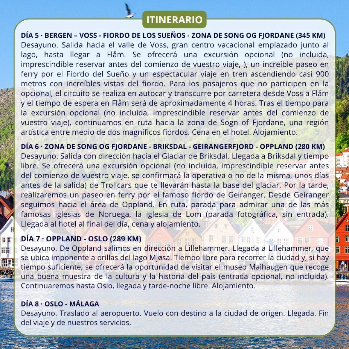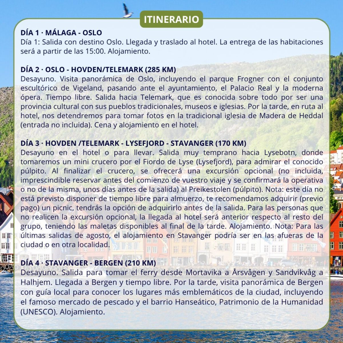 FIORDOS NORUEGOS y OSLO 🏔️ desde Málaga, el 30 de Septiembre (8 días/7 noches) . Incluye: 🛩Vuelo (maleta), 🏨 Hoteles 3* y 4* en AD (Alojamiento y Desayuno), 3 cenas (sin bebida), Visitas a Oslo, telemark, Hovden, Stavanger, Bergen, Flam, Førde, Geiranger, Oppland y Lilehammer, guía acompañante, traslados y seguro. Precio desde 💶 2.499€/persona. NO INCLUYE: Bebidas, tasas y propinas. #malaga #fiordos #oslo #viajesengrupo #viajelio #viral #viajes #travel