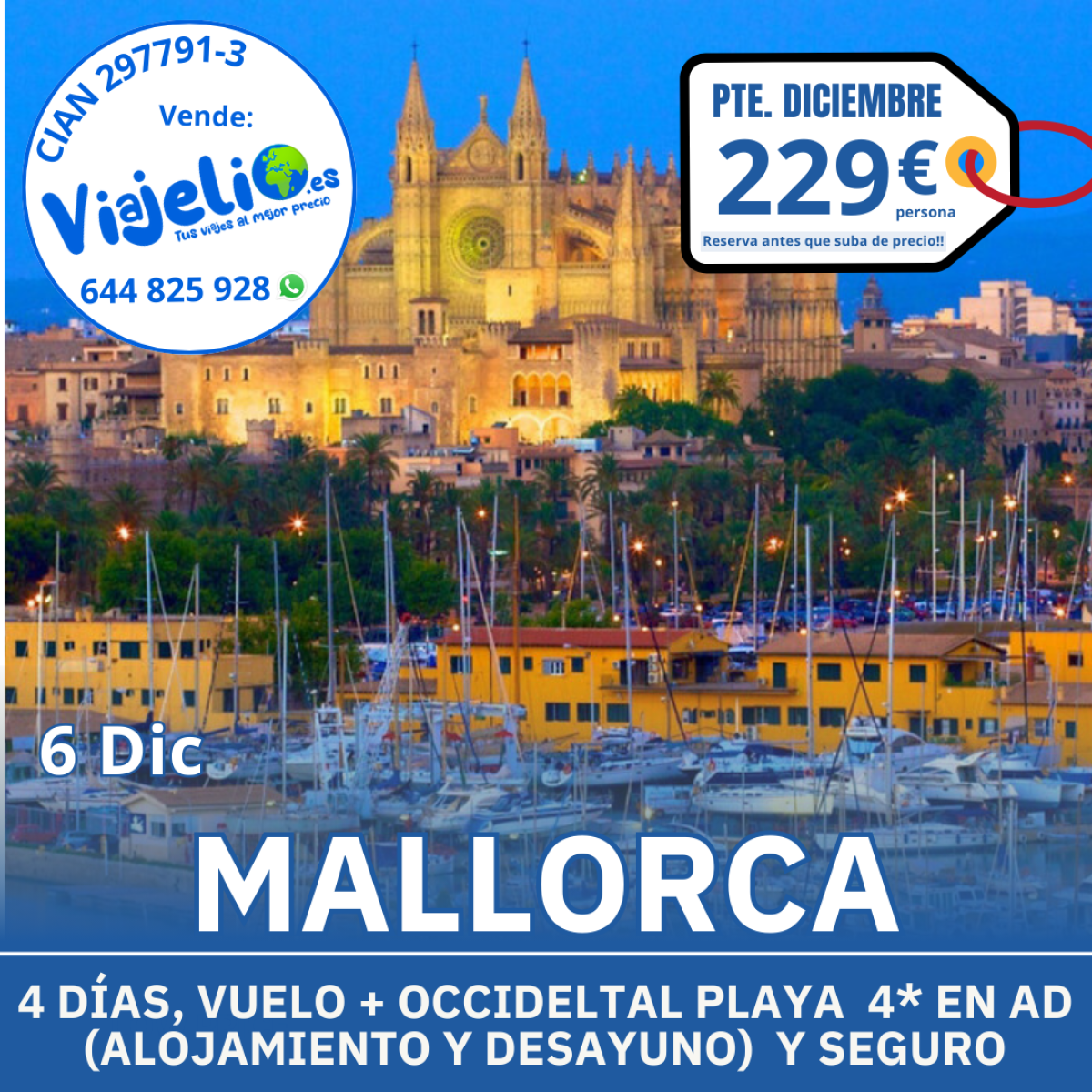 MALLORCA 🎉 (Pte. de Diciembre) desde Málaga del 6/9 de Diciembre. Incluye: Vuelos 🛩 (mochila), Hotel 🏨 Occidental Playa 3* en AD (Alojamiento y Desayuno) y Seguro. Precio desde 💶 229€/persona. Reserva tu plaza aquí >> https://viajelio.link/MA061224 #mallorca #baleares #malaga #puentedediciembre #viajesbaratos #Viajes #ofertas