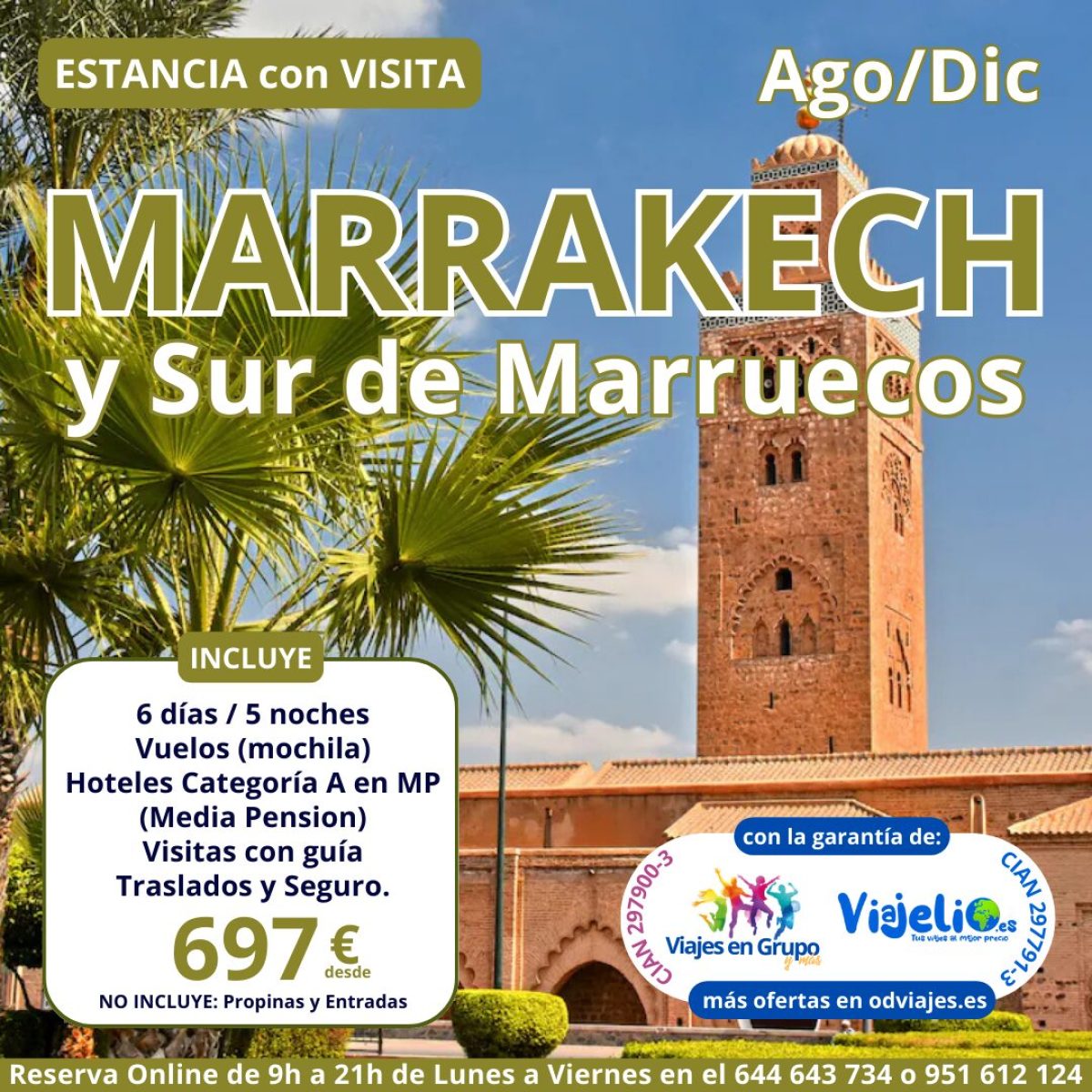 MARRAKECH de Agosto a Diciembre, (6 días/5 noches). Incluye: Vuelos (mochila), Hoteles Categoría A en MP (Media Pensión), Visitas con guía, Traslados y Seguro. Precio 697€/persona. Más info y reserva en https://viajesengrupo.es/marrakech #marrakech #marruecos #