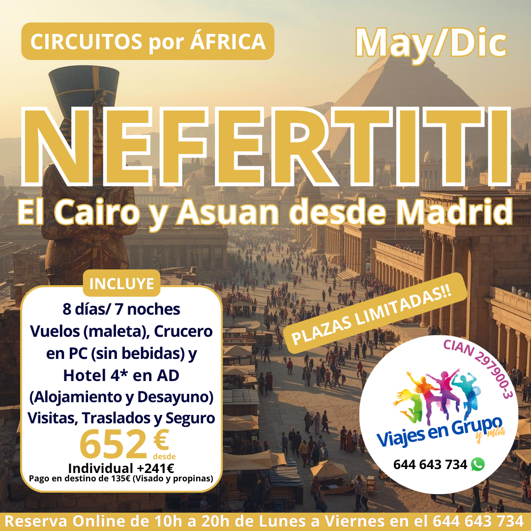 - Reserva web: https://www.viajesengrupo.es/grandes-viajes/africa/egipto/circuitos/circuito-con-crucero/egipto-nefertiti-el-cairo-y-crucero-asuan-desde-madrid-8-dias.html?skipBrochure=true