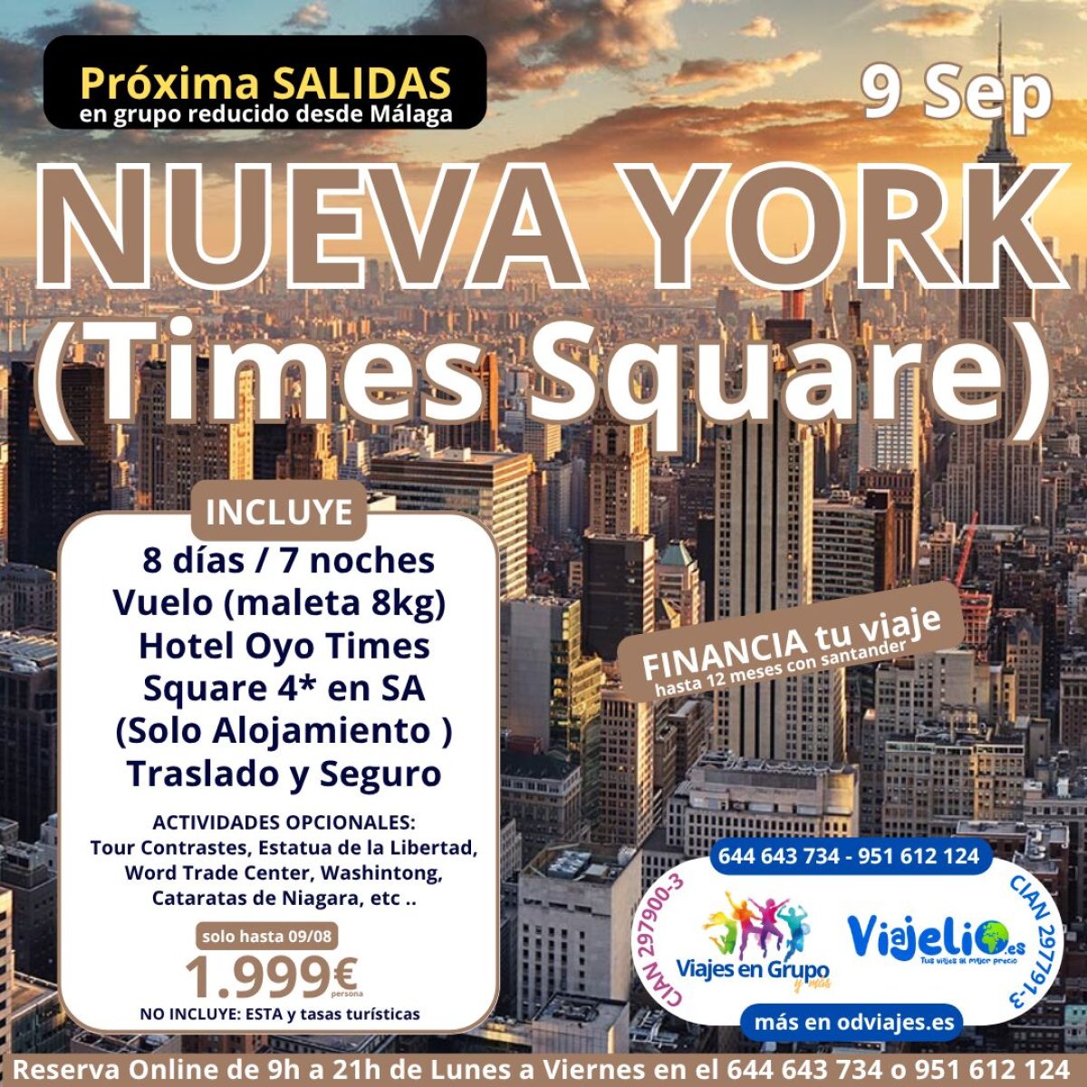 NUEVA YORK 🗽 (Time Square) desde Málaga, el 9 de Septiembre (8 días/7 noches) . Incluye: 🛩Vuelo (maleta 👝 8kg), 🏨 Hotel Oyo Times Square 4* en SA (Solo Alojamiento), guía acompañante, traslados y seguro. Precio desde 💶 1.999€/persona. Visitas, tasas y ESTA no incluido. Excursiones opcionales. #malaga #eeuu #nuevayork #viajesengrupo #viajelio #viral #viaje