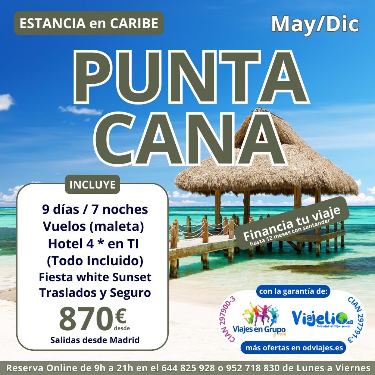 Punta Cana 🌴 (Caribe) de Mayo a Diciembre. Incluye: Vuelos 🛩 (maleta), Hotel 🏨 4* en TI (Todo Incluido), Fiesta Sunset, traslados 🚌 y seguro 🎫. Precio 💶 desde 870€. #caribe #puntacana #madrid #viajesengrupo #viajelio #viajes #ofertas