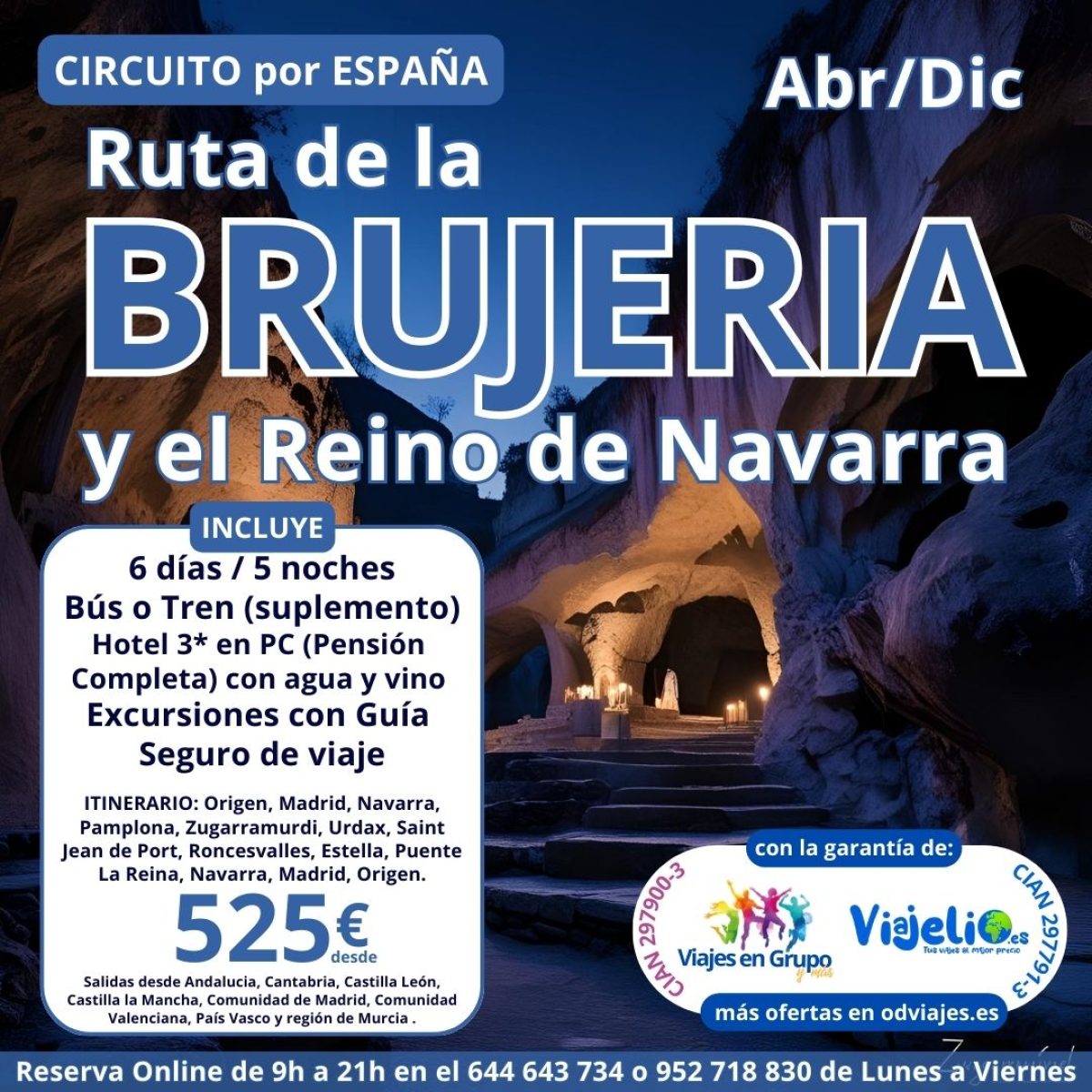 RUTA de la BRUJERÍA 🧙♀️ y el Reino de Navarra de Abril a Diciembre. Incluye: 🚌 Autobús o tren 🚆 (suplemento), 🏨 Hotel 3* en PC (Pensión Completa) agua y vino 🍷, excursiones 🌇 con guía local 🙅♀️ y seguro de viaje. Precio desde 💶 525€/persona. Salidas desde Andalucía, Cantabria, Castilla León, Castilla la Mancha, Comunidad de Madrid, Comunidad Valenciana, País Vasco y región de Murcia. Más info aquí 👉 https://viajesengrupo.es/brujeria #navarra #brujeria #viajesengrupo #viajelio #viajes #travel