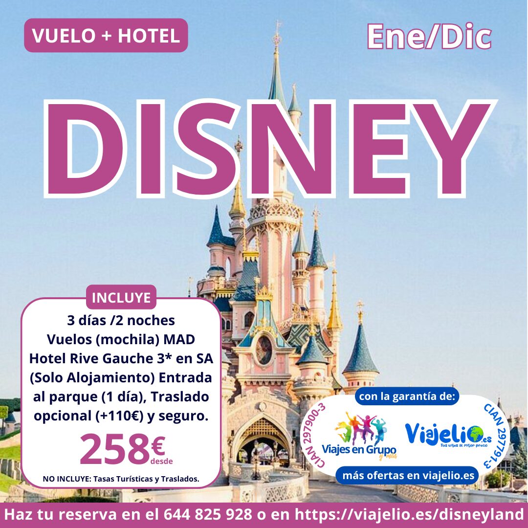 <🌟 ¡Descubre Disneyland con vuelo + hotel! 🏰 ¡3 días/2 noches desde 258€ de Enero/Diciembre! Incluye: ✈️ vuelos (mochila) 🏨 hotel Rive Gauche 3* en SA (Solo Alojamiento) 🎟️ Entrada al parque (1 día), Traslado opcional (+110€) 🛡️ Seguro. No incluye: Tasas Turísticas y Traslados. 📞 Reserva online en el 644 825 928 o en https://viajelio.es/disneyland 🌐 más info en viajelio.es/disneyland #disneyland #viajelio #malaga #ofertasviaje