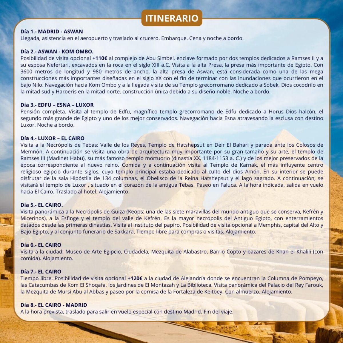¡Disfruta 8 días/7 noches navegando el Nilo y descubriendo las pirámides! ✨
