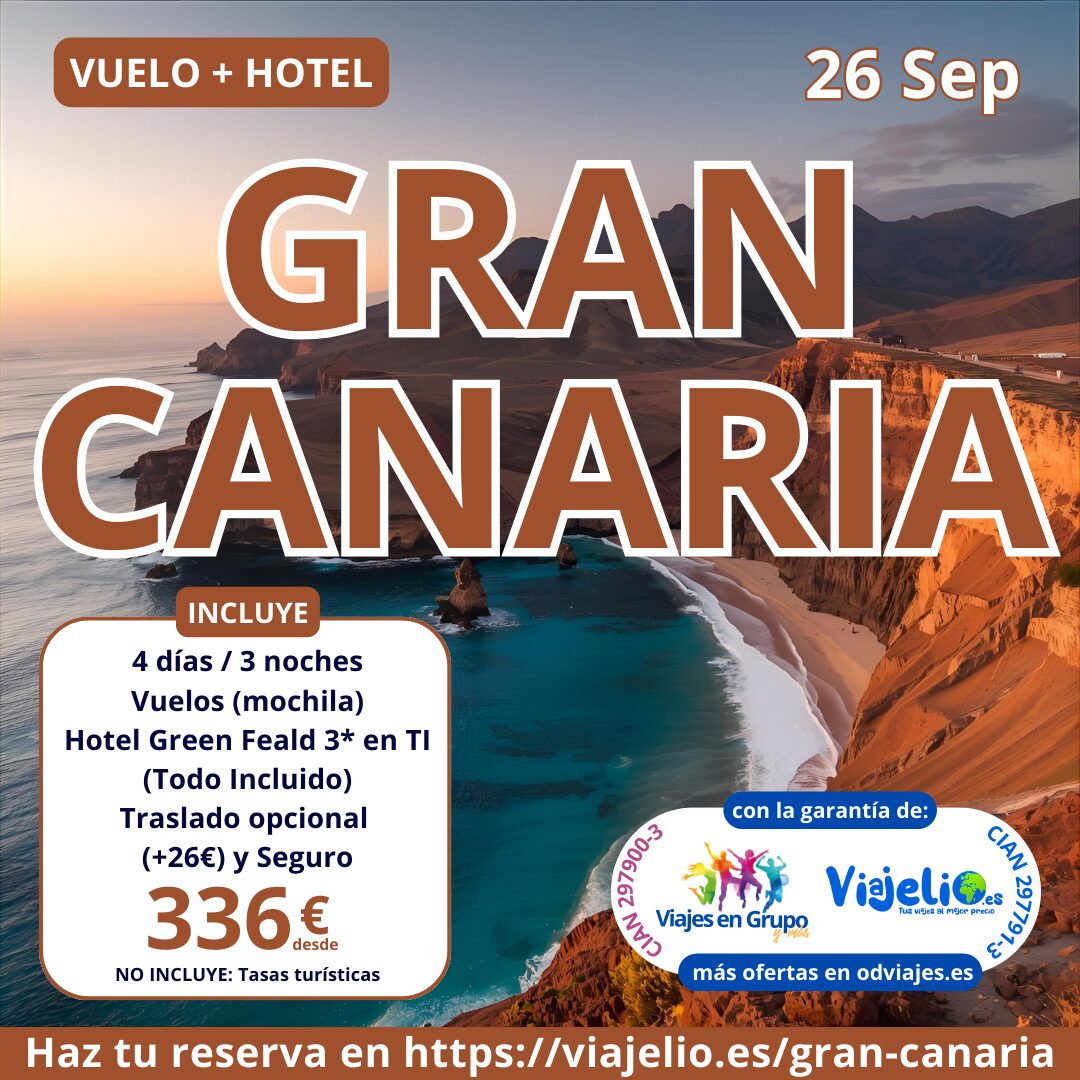 ¡Disfruta 4 días/3 noches explorando Gran Canaria el 26 Sep! ✨