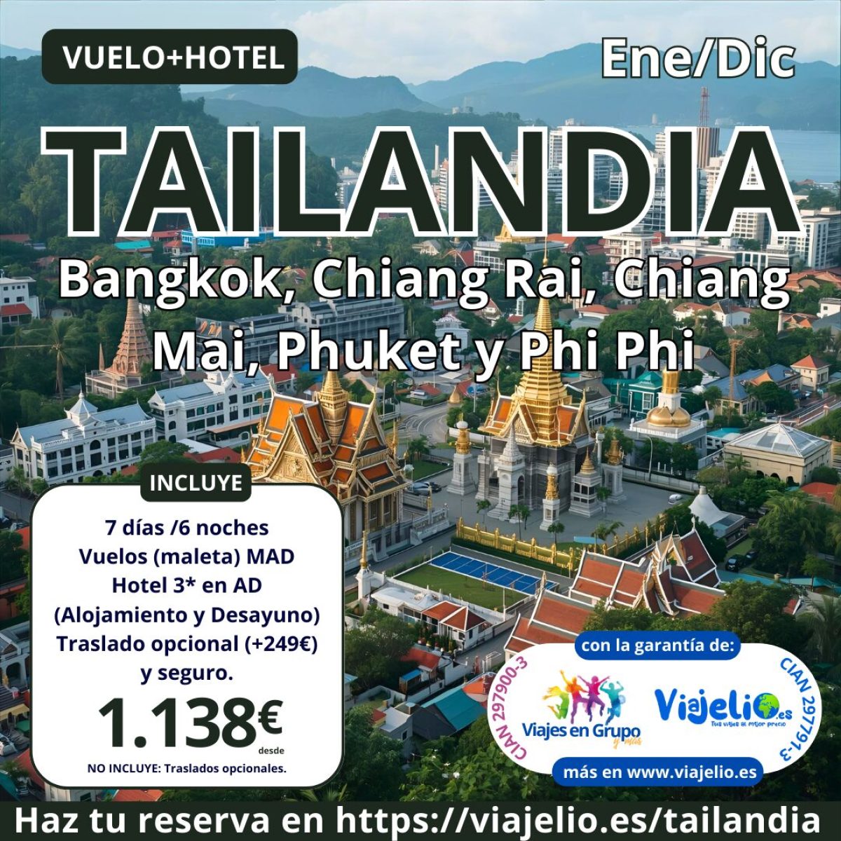 🌟 ¡Tailandia (Bangkok, Chiang Rai, Chiang Mai, Phuket y Phi Phi) desde Madrid por solo 1.138€/persona! 🌴