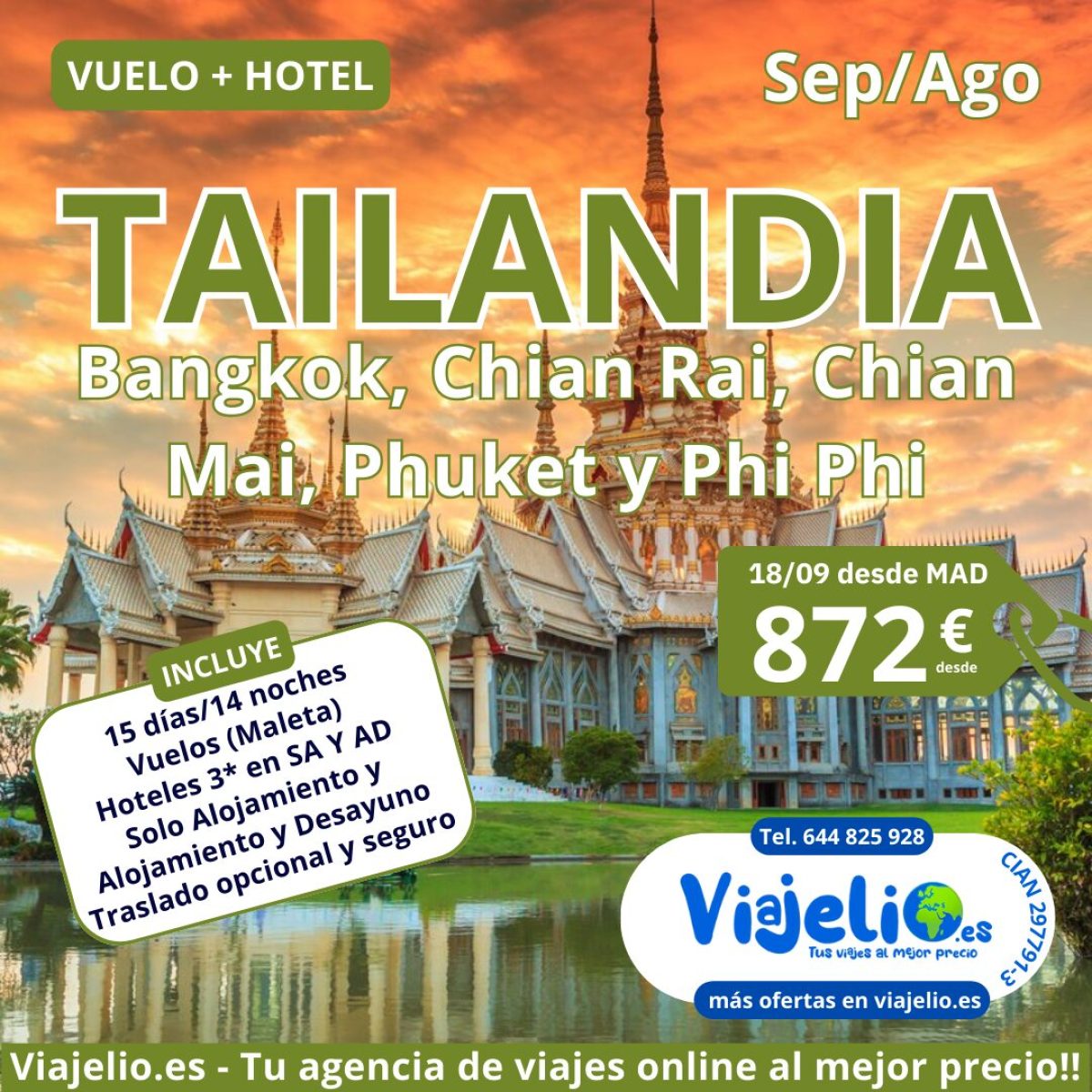 Viaje a Tailandia Sep/Ago, (15 días/14 noches). Incluye: Vuelos (maleta), Hoteles 3* en SA y AD (Solo Alojamiento y Alojamiento y Desayuno), Traslados opcionales y Seguro. Precio desde 872€/persona. Más info y reserva en https://viajelio.es/tailandia #tailandia #asia #viajelio #viajes #travel
